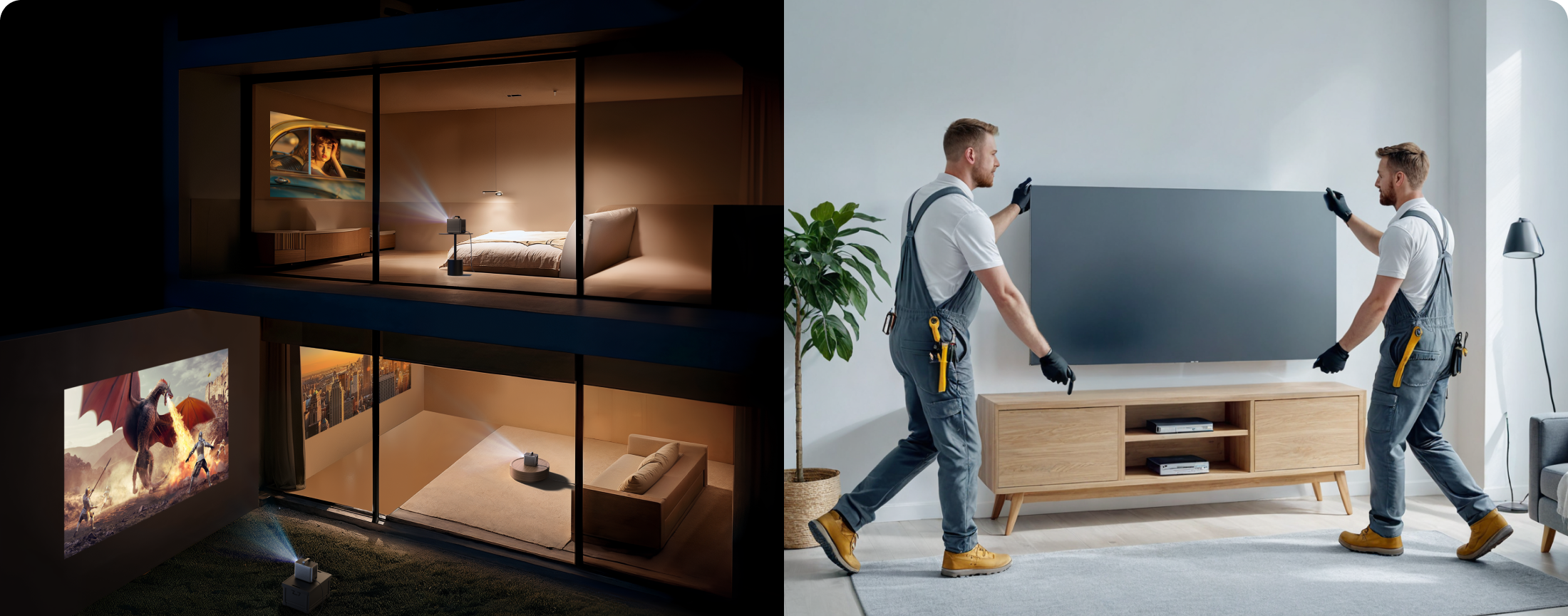 No bulky setups here. Our sleek projectors and screens fit seamlessly into any room, maximizing space.